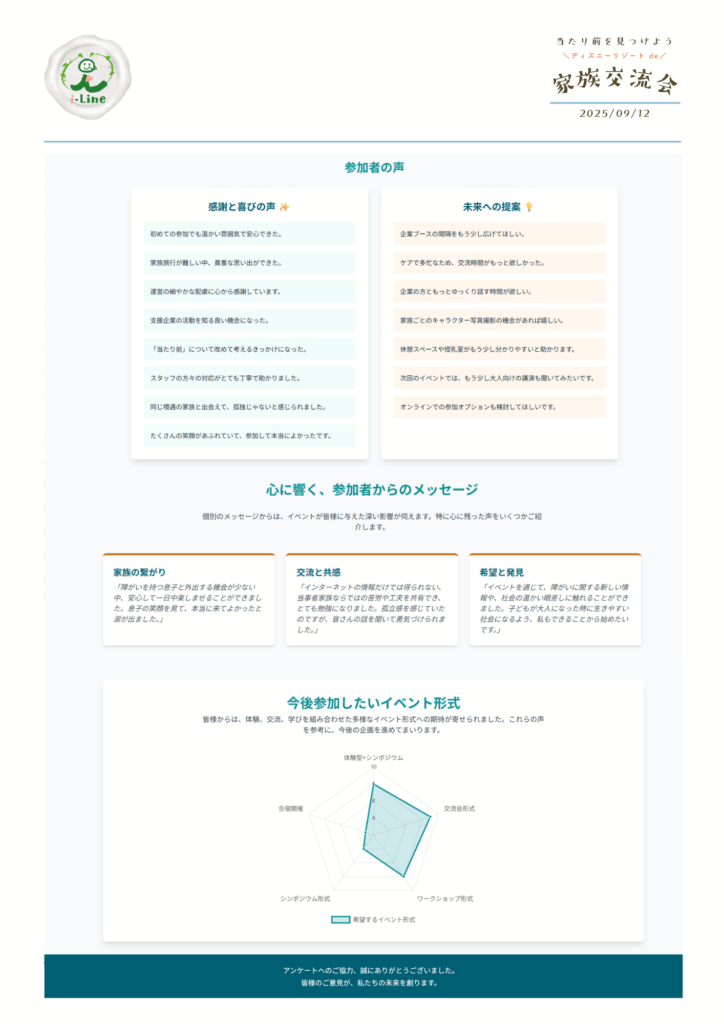 「当たり前を見つけよう ディズニーリゾート de 家族交流会」アンケート結果報告